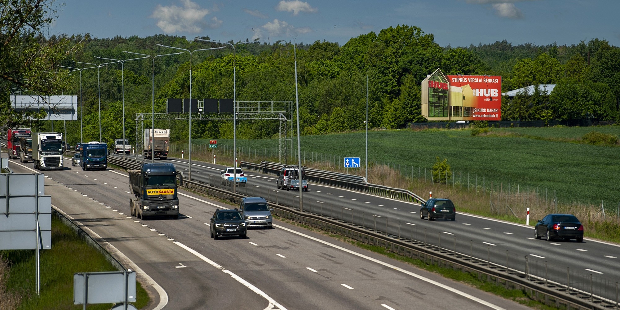 Going from Vilnius to Kaunas billboard is on the right hand-side;