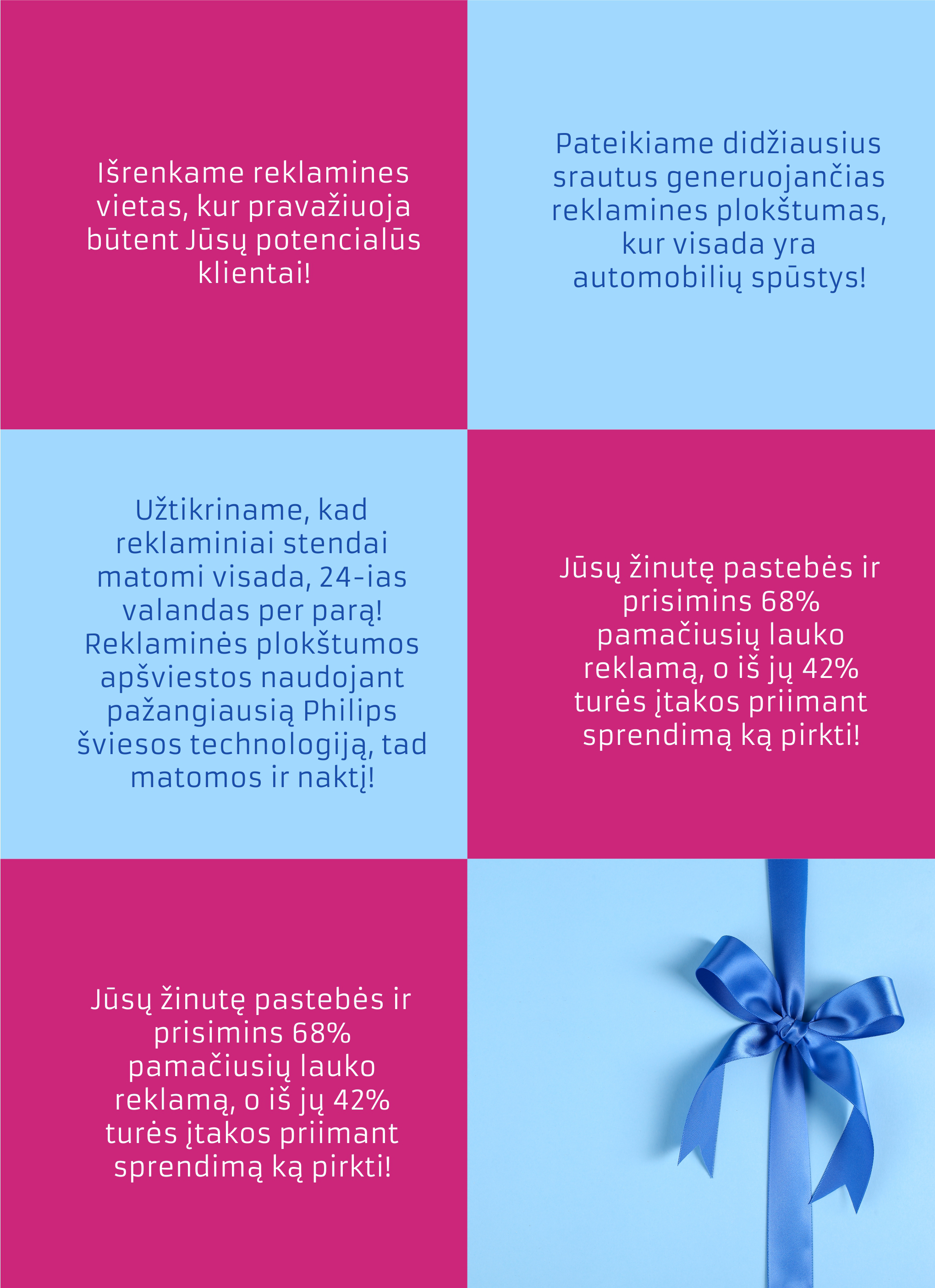 Tikime lauko reklamos efektyvumu ir norime, kad tuo įsitikintumėte ir jūs - visiškai be rizikos.