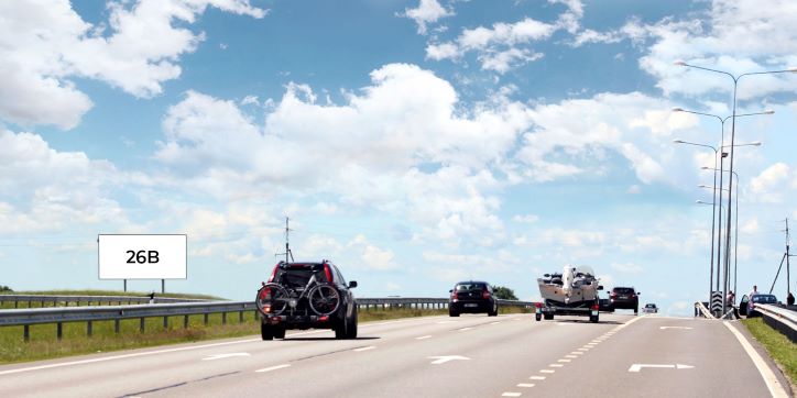Dvipusis reklaminis stendas įrengtas aukščiausioje magistralės vietoje.